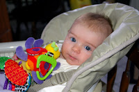 You should have seen the look on my grandfather's face when I took the baby's socks off for the jumpster...not quite as eye bulging as when I set the jumpster up on the molding, but amusing nonetheless. It took them a loooong time to relax after Claire started bouncing...but pretty soon out came the video camera and the encouragement to bounce more.